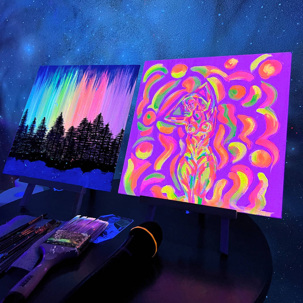 Tijdens de Neon Art Experience organiseerde het Vrouwenpowernetwerk een creatieve en inspirerende workshop in samenwerking met Isis van Neuro Art Brainstudio. Onder neonlicht gingen deelnemers intuïtief schilderen en werken met kleur, gevoel en expressie.